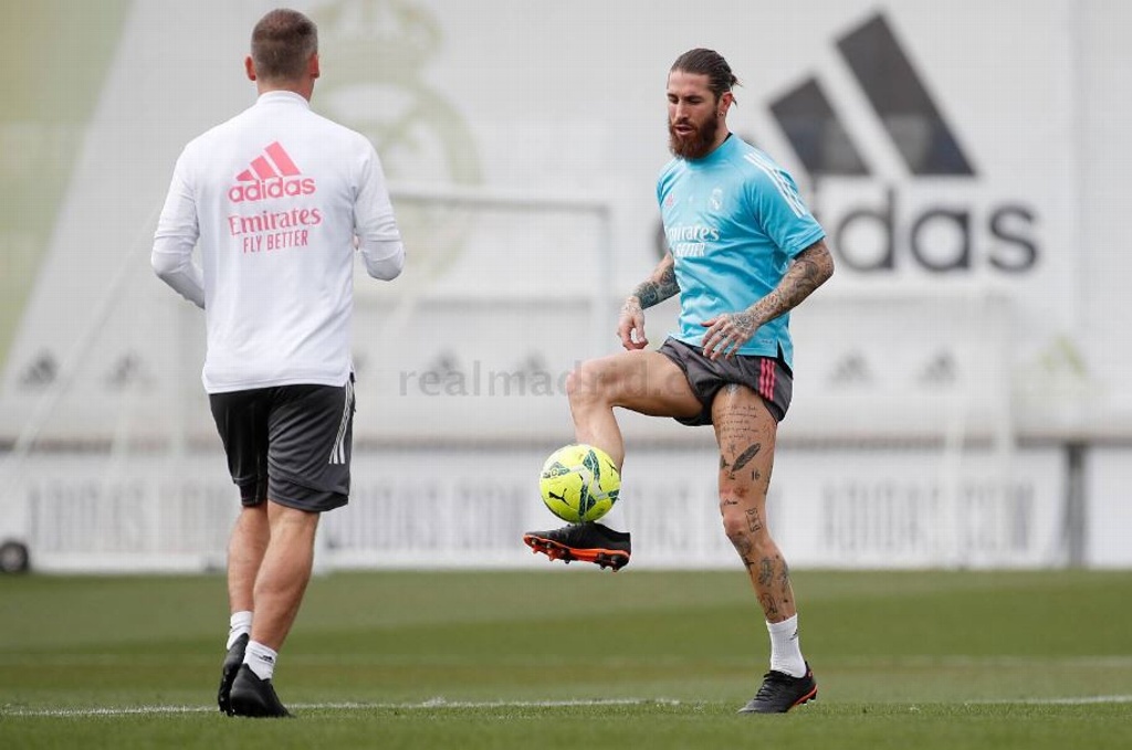 Ramos, entrenó hoy en la Ciudad Deportiva, lo hizo por separado de sus compañeros, pera ya trabajó con balón y realizó cambios de ritmo en el césped merengue.